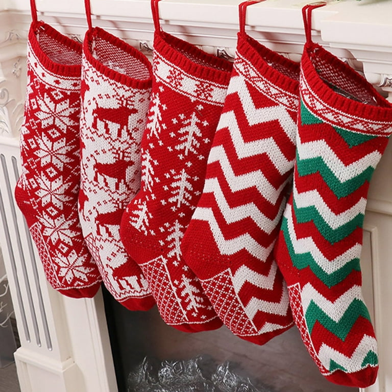 5 Pack 18 Inch Knit Christmas Stockings Reindeer Christmas Tree Snowflakes Knitted Stocking Christmas Ornaments Hanging Rustic Stocking Decorations Tree Ornaments For Holiday Tree Decor Walmart Com